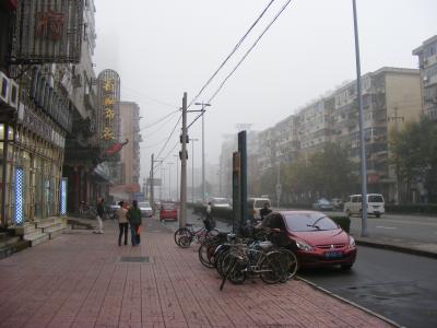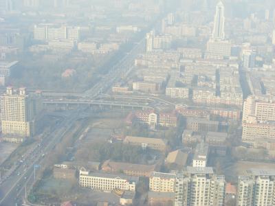 Und hier die Skyline von Tianjin, es ist zwar smoggy gewesen aber die ungeputzten Fenster haben ihren Teil beigetragen...
